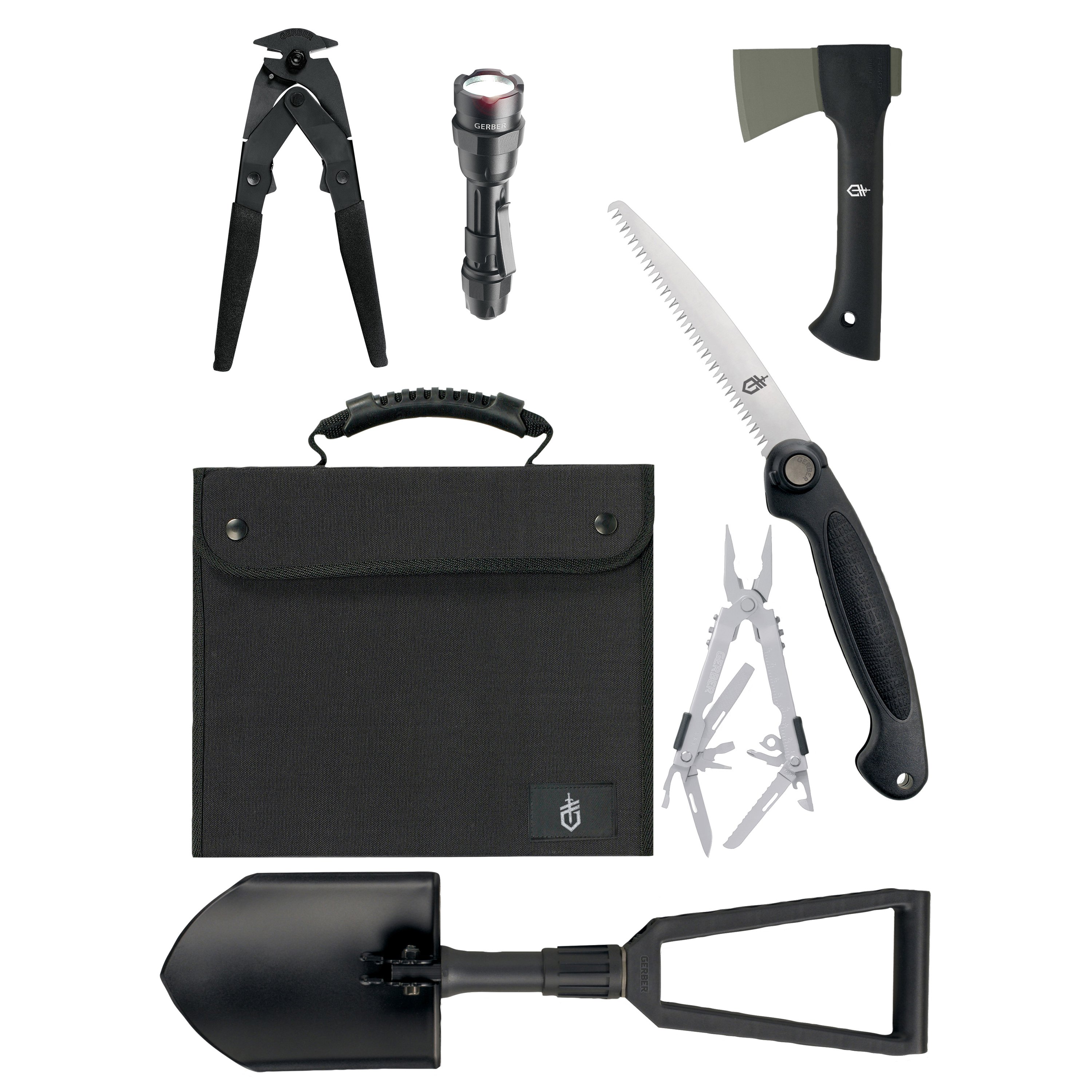 Gerber's Off-Road Survival Kit equips you with rugged, emergency tools for any situation. This high-speed kit includes an MP 600 multi-tool, Back Paxe Axe, an Expert M 100+ lumen tactical flashlight, an E-Tool an Exchange A Blade hand saw, a Concertina Wire Cutter and a small First Aid Kit. With limited space in your vehicle, the compact size of this kit enables you to secure your gear almost anywhere. So if you find yourself down-range or simply down the road you will be prepared.