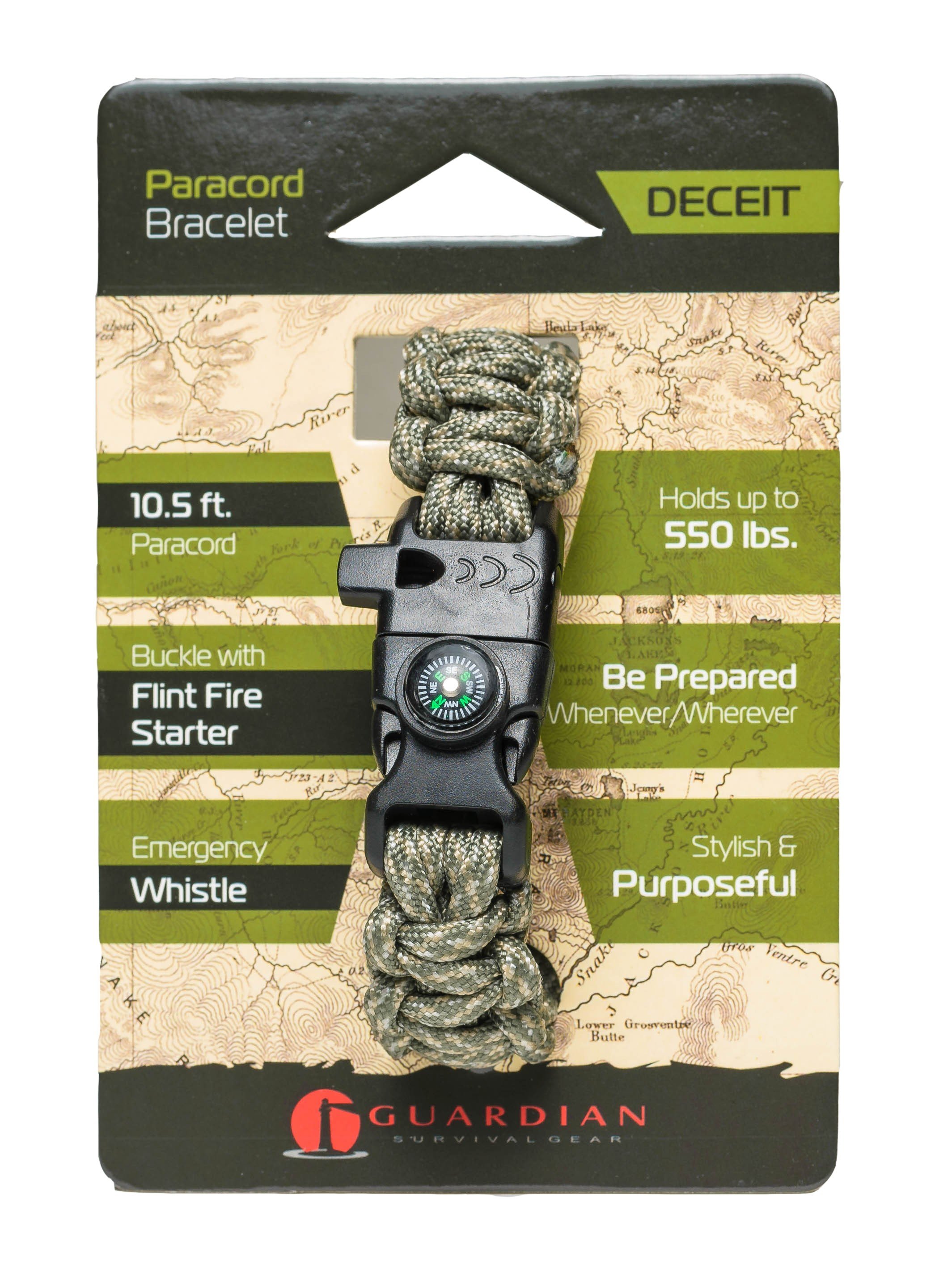 Be prepared wherever you go with the Paracord Bracelet. The Paracord Bracelet is made of 10.5 Feet of 550lb-rated paracord and includes a Buckle with a Flint Fire Starter and Compass.