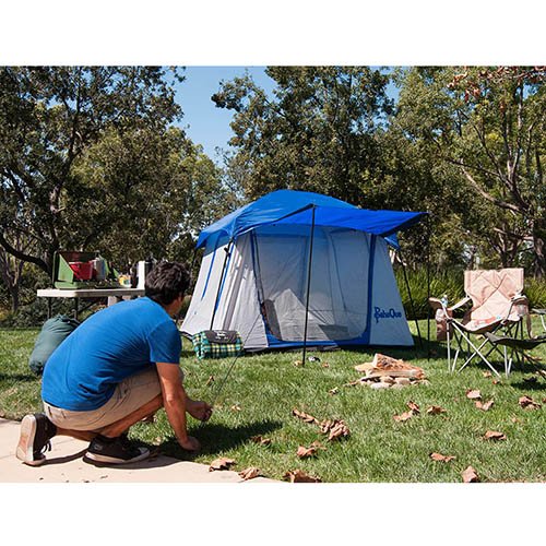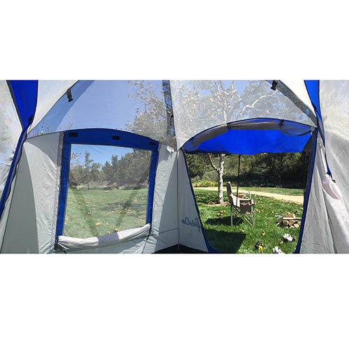 - Large main outer door can be unzipped and utilized as an awning while keeping the inner mesh door closed to keep bugs out