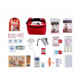 All items are packed securely in our Cooler Bag. Individual components are placed in waterproof bags and neatly organized in the cooler bag for easy access. Hand-assembled in the USA. The kit includes the following: Food and Water: The food and water in this kit have a 5-year shelf life. 6 — 4 oz. Water Pouches 6 — 400-Calorie Food Bars (2400 Calories) 10 — Water Purification Tablets - each tablet purifies 1 liter of water 1-Liter Hydration Bag with Straw Light and Communication: These items can come in handy if you experience a home power outage, car trouble, or other emergencies. AM/FM Radio (batteries included) Hand Rechargeable Flashlight (never needs batteries) 5-in-1 Survival Whistle Shelter and Warmth: These supplies will protect you from wind, sun, rain, and other harsh conditions. Emergency Survival Sleeping Bag Emergency Poncho for Children Tools: These items can be useful when you need help with navigation, transport, personal protection, or shelter. N95 Respirator Dust Mask (NIOSH-approved) Hygiene and Sanitation: Hygiene is important in a disaster; staying clean can protect against infection, disease, and depression. Pocket Tissues 3 — Wet Wipes First Aid: A first aid kit can be used to treat minor injuries and protect against more serious health threats in a disaster. Bandage First Aid Kit - handy for minor cuts Other: These items are useful for relieving stress and supporting activity under challenging conditions. Activity Coloring Book with Crayons Emergency Survival Kit Information: This kit was designed using advice from experts in the field of emergency preparedness. It follows guidelines offered by government agencies and non-profit preparedness organizations. This “Survival Pal” cooler bag survival kit has a retail value of $45.